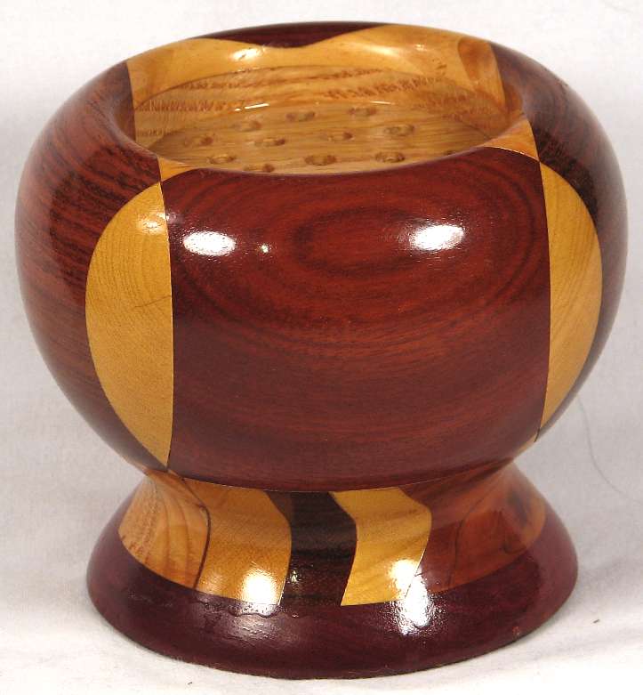 comments: I had originally intended that all of my bowls of this shape would be dried flower holders with the center raised and drilled out like this one. I have since changed it so that the centers are hollowed out to make the whole thing more of a goblet than a dried flower holder because the goblet shape is more versatile --- you could put a styrofoam ball into it and poke dried flowers into the styrofoam if you want it to be a dried flower holder. Anyway, the point is that this is one of just a handful that will be available with the drilled center.