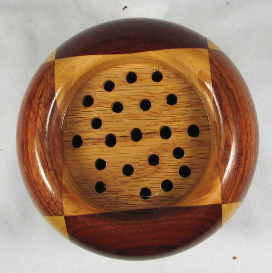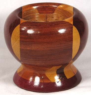 The moisture absorption that caused stress fracture in the oak center also caused some slight movement in other pieces so that when you run your finger around the circumference of the bowl, you can feel very slight ridges at a couple of the joints.