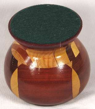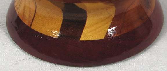 The finish is rather sloppy at the bottom of view 1 and I've included an enlarged picture of it (the first of the pics at the bottom of the page) so that you can see what I mean. This was an early bowl and I've since learned how to avoid the "drip" look on the finish. I DID go back and redo the finish on that area of the bowl, as shown in the subsequent pic below.