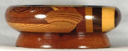 comments: The meranti in the base looks very nice but this is the only bowl it will ever occur on (at least, as the base or any large segment) because it has a high silicon content and is brutally tough on the turning tools.