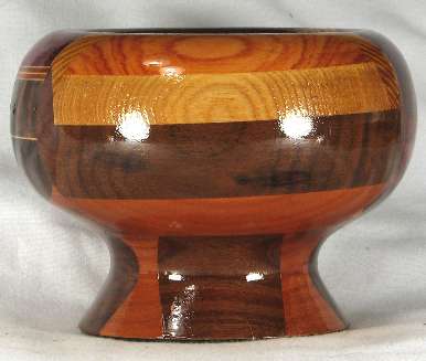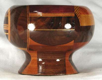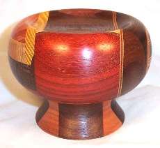 comments: This bowl sat around for 3 years after getting the one coat of regular polyurethane but before getting the spar poly and consequently the padauk in view 3 darkened noticeably but stayed red rather than becoming brown.