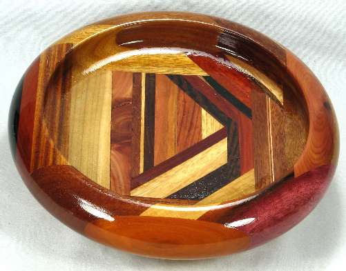 view 1: African blackwood, redheart, canary, green-colored tulip poplar, aromatic red cedar, BOX