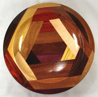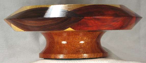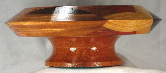 LATER: a stress separation has appeared along the whole left side of the BOX. It does not detract from the beauty of the bowl but it is very obvious to the finger and since I HATE those separations, I have dropped the price down to clearance level. I also note that some of the woods have lost some vibrancy of color since the pics were taken.