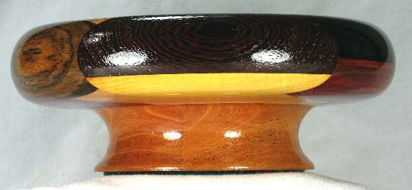 view 1: redheart over zircote over curly maple over redheart, canary, Honduras rosewood, BOX