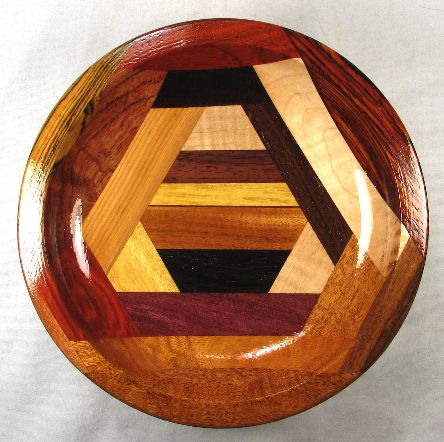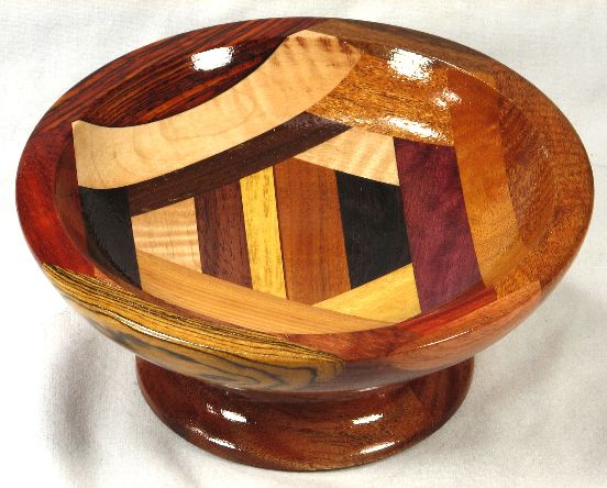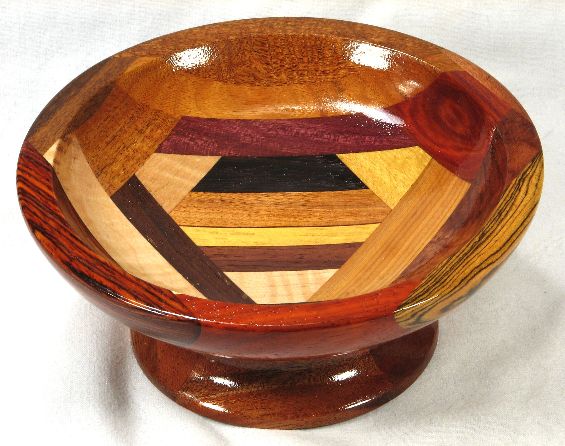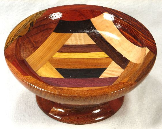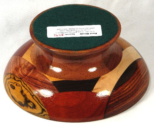 flaws/issues: The kuruguay in the lower left has a crack on the upper rim and I had to slice the sharp edge and sand it, so there is a minor but noticeable indentation along the rim. The yellowheart in the middle has faded somewhat since these pics were taken many years ago and the bocote in the upper left has darkened.