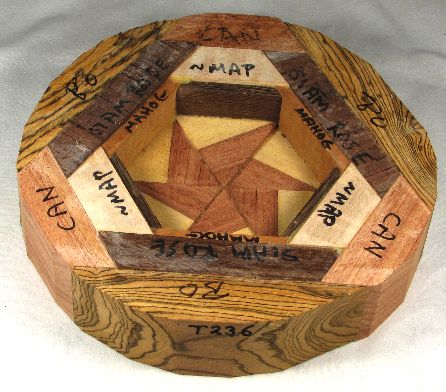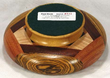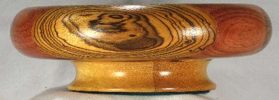 comments: This bowl is symmetrical about a line directly down the middle, or looked at another way, it is symmetrical in three sections. The woods are all very nice and complement each other beautifully.