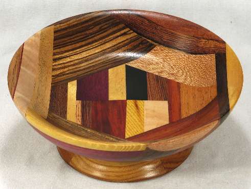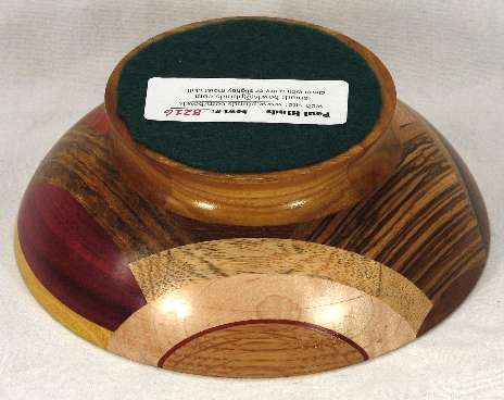 comments: The purpleheart on the lower rim in view 6 is nicely chatoyant as is the shedua in view 6. The prima vera in view 5 has a mild case of blue stain