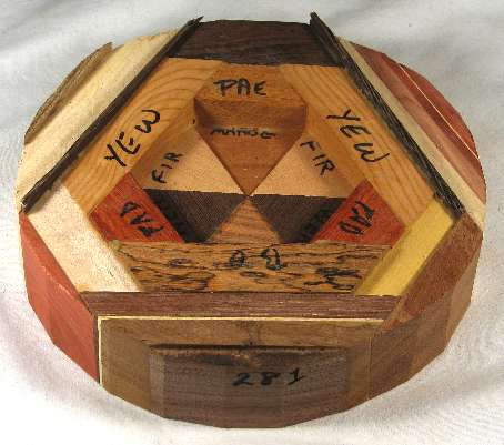 view 4: aromatic red cedar, redheart, maple veneer, redheart, aromatic red cedar, all over Honduras rosewood, then basswood, wenge, yew, BOX