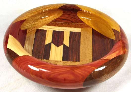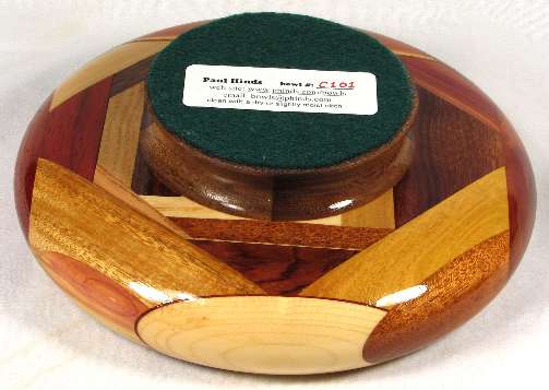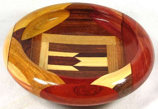 flaws/issues: There is a hairline stress separation at the right of the BOX, another at the maple veneer/mahogany joint in view 1, and another at the canary/oak joint in view 2. These can be both seen and felt and are the cause of the low price on the bowl.