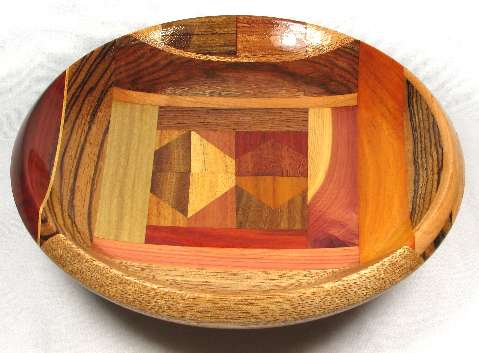 view 3: red oak over padauk over red oak, and all backed by bocote with sapwood and topped by a thin rim of hard maple. Behind all that is paela then the BOX
