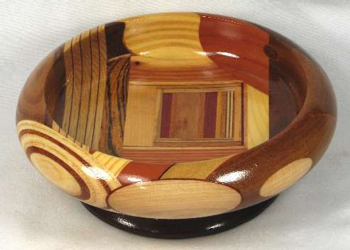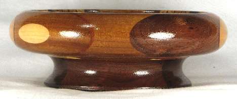 view 1: hard maple, padauk veneer then slanted woods from the left are mahogany, pine, ?, ebony veneer, and yellowheart and after the slants, the BOX