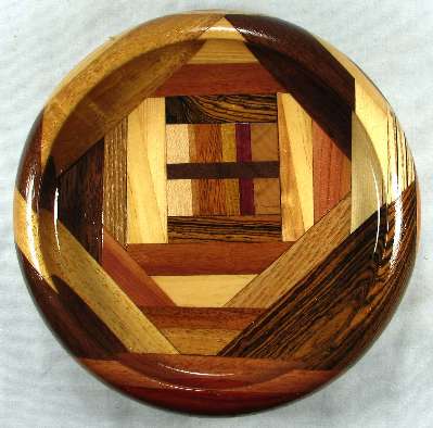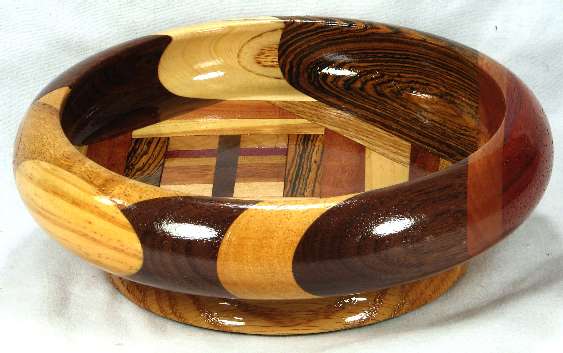 The afrormosia in view 6 has a small separation from the walnut of view 7 at the edge of the flat portion of the bowl. This isn't very visible but you can feel it with your fingernail. On the bottom of the bowl it's a little wider and more visible.