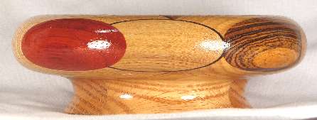 comments: I think the use of the ebony veneer worked very well to create make the outer ovals and inner omega curves stand out and to sharply delineate the red oak and sen.