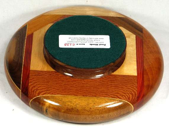 I ALWAYS POINT OUT ANYTHING THAT NEEDS TO BE COMMENTED ON. THESE ARE (UNLESS OTHERWISE STATED) THINGS THAT DO NOT DETRACT FROM THE BEAUTY OF THE BOWL, BUT I WANT TO BE SURE I GIVE A COMPLETE DESCRIPTION. SO ... The lacewood at the top has a very noticeable edge flaw due to cross-grain tear-out inside the rim on the upper right. This was big enough that I had to smooth the edges with a Dremel tool, and the price is lower than it would otherwise be because of this obvious flaw.