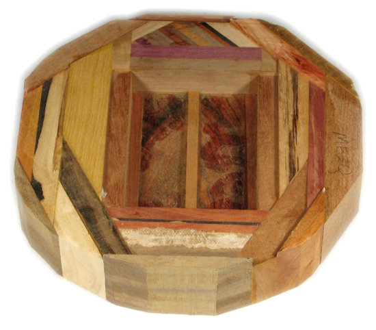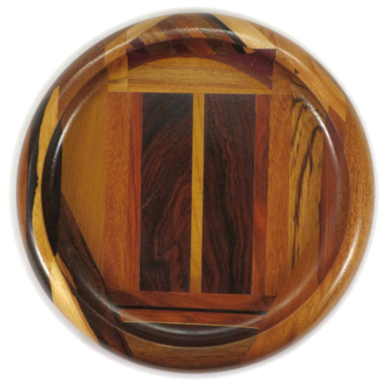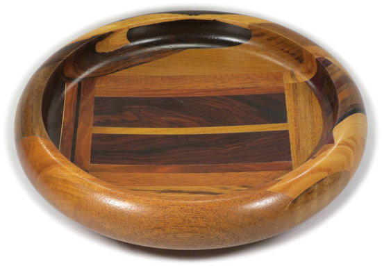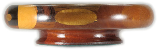 COMMENTS: The cocobolo in the middle is quite nice, although it was more of a standout before it darkened to what you see here (the bowl blank image below shows how it looked when fresh). The mottled sapele in the upper left is terrific and if you catch it in a bright light, it's gorgeous, as you can see in the second side view below.