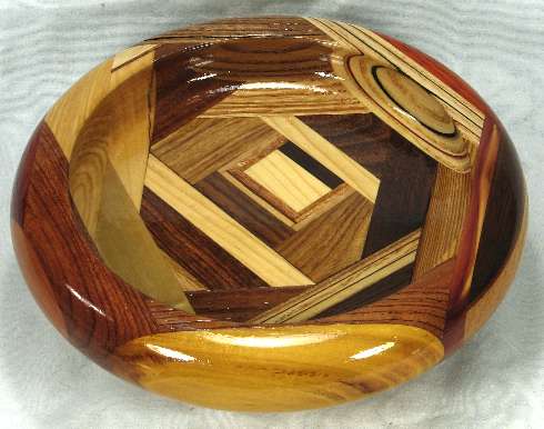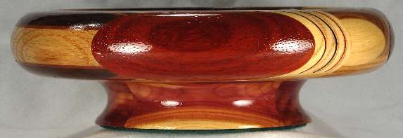 flaws/issues: The elm in view 5 has a crack. It doesn't appear to be a stress separation in the glued up bowl but rather a drying crack in the wood, but whatever it is, it is visible (see view 8a below) and very noticble to the touch.