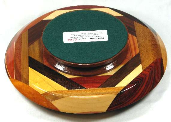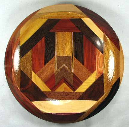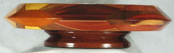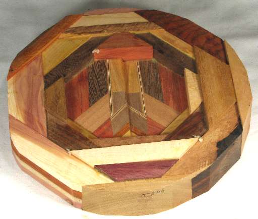 COMMENTS: A very attractive bowl if I do say so myself, with many excellent woods and good contrast and a fairly symmetrical design. Very hefty because this particular shape retains a lot of wood.