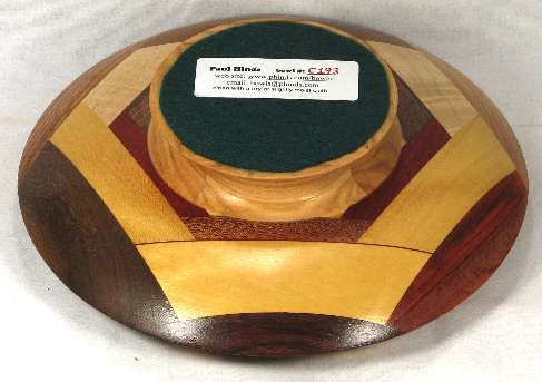 The "style" of this bowl usually includes a flat lower rim pretty much at a right angle to the flat upper rim, but on this one I decided to try a curved lower rim and I like the way it turned out so will likely do more of this shape.
