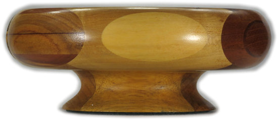 I ALWAYS POINT OUT ANYTHING THAT NEEDS TO BE COMMENTED ON. THESE ARE (UNLESS OTHERWISE STATED) THINGS THAT DO NOT DETRACT FROM THE BEAUTY OF THE BOWL, BUT I WANT TO BE SURE I GIVE A COMPLETE DESCRIPTION. SO ... There is a slight lift of the edge (due to movement in service) of the wenge in in upper left as it comes into the rim at the far left. It is quite visible due to the overlap with the next piece (shown circled in blue in one of the pics below) and you can definitely feel it with your finger tip. Although this is a single fairly minor flaw I have priced the bowl quite low because of it.