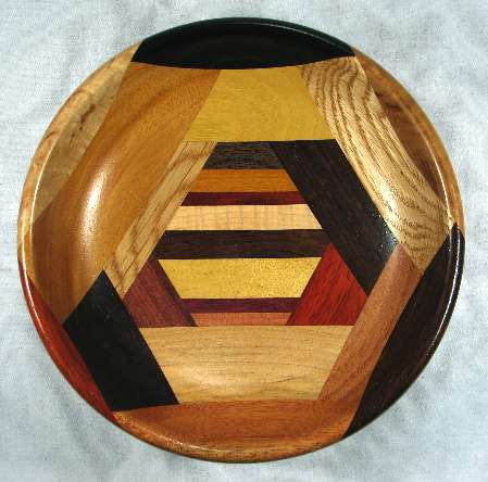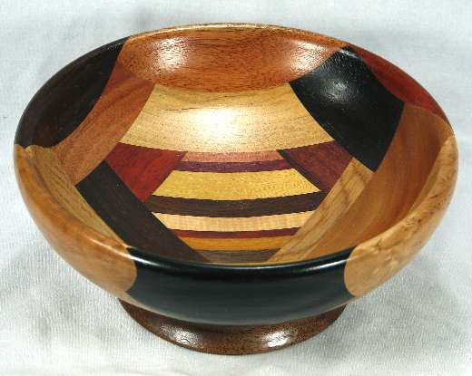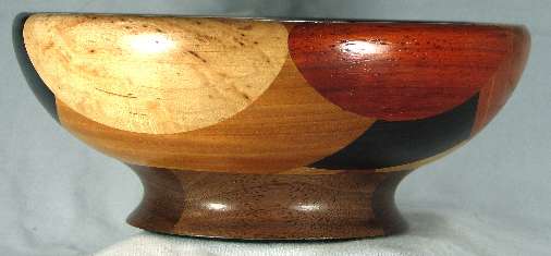 BOX: from the bottom up; aromatic red cedar, cabreuva(?), yellowheart, Honduras rosewood, curly maple, bloodwood, paela