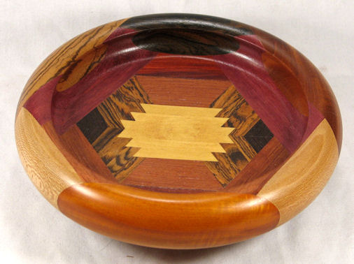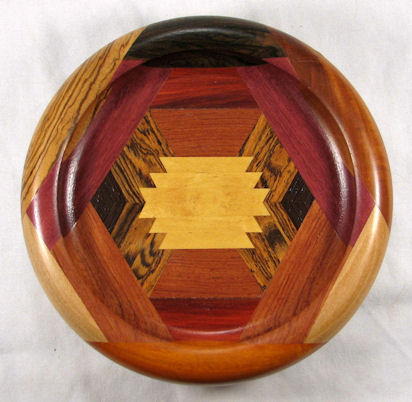 comments: This one is, in my opinion, just all-around gorgeous. There are no woods in it that are less than excellent and I think the design works particularly well. The BOX in this one was influenced by Navhoe rug designs I saw in the American Southwest in the 1950's.