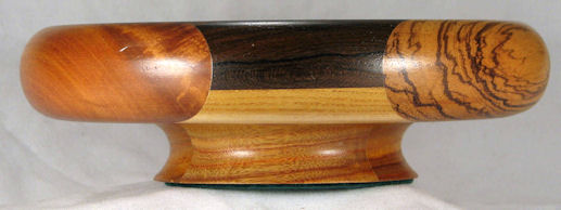 BOX: all of the center pieces are yellowheart and there is bubinga both above and below the center. On the left and right are laminations of bocote and wenge.