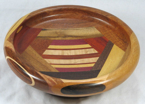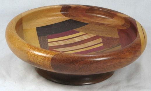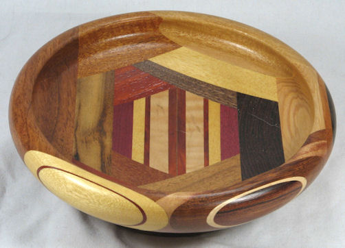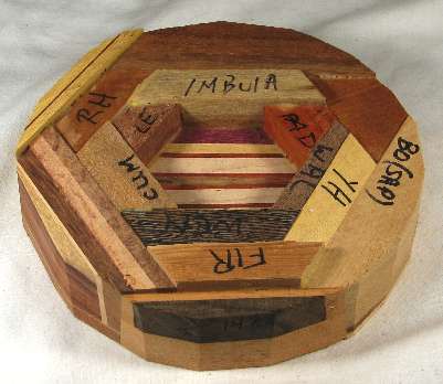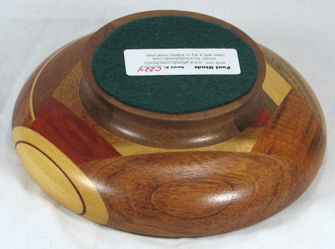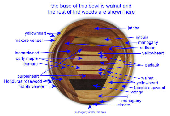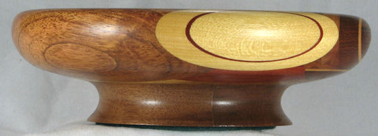 flaws/issues: the imbuia at the top has a small void at the upper left edge (it's part of the dark streak in the orientation pic). There is a stress separation along the underside of the rim on the left side but this does nothing to the appearance of the bowl but I've still kept the price pretty low because I don't like having ANY flaws in my bowls.
