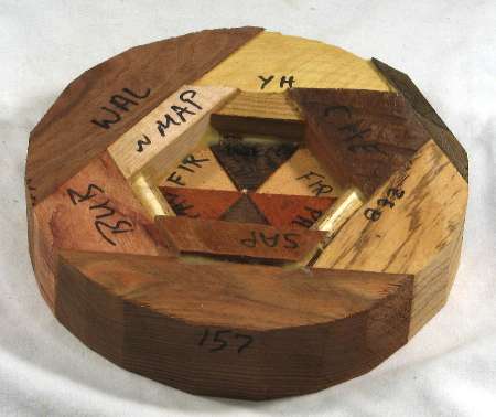 BOX: bottom and top wedge are wenge, lower left and lower right wedges are padauk, upper left and upper right wedges are fir