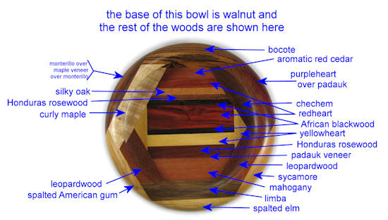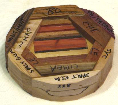 comments: nice bold color contrasts in the middle of this one including a particularly attractive piece of redheart with a more bold grain than that wood normally exhibits.