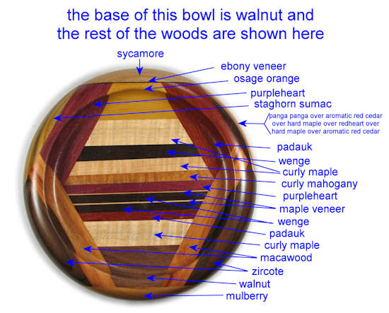 comments: In general, there are lots of very nice wood in this one. Some standouts are: the zircote in both views 2 and 8 is outstanding, the sycamore in view 5 is really great and the black ebony veneer behind it makes it stand out beautifully, the curly maple in both views 1 and 5 is excellent, and the staghorn sumac in view 6 is a pleasure to look at.
