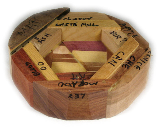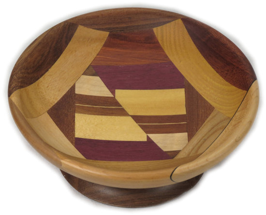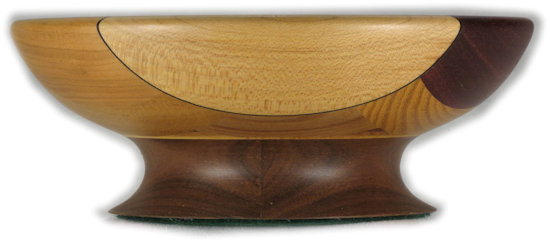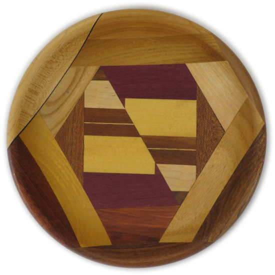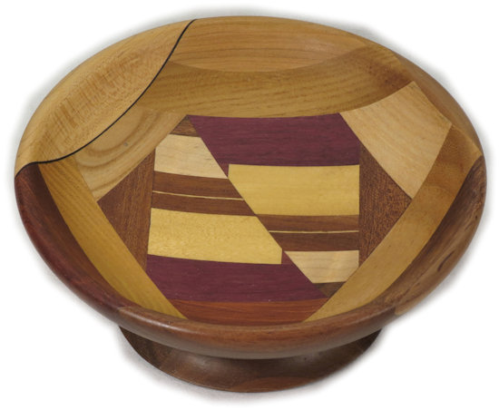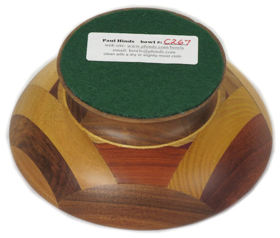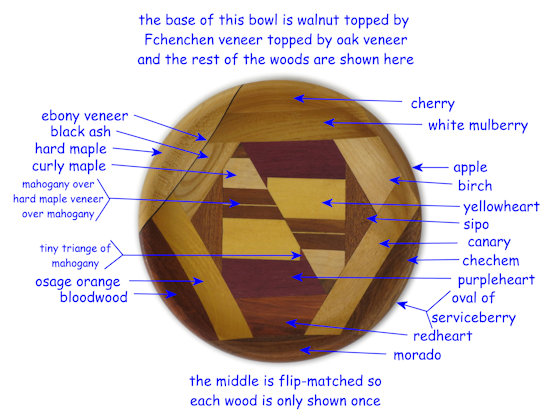 I ALWAYS POINT OUT ANYTHING THAT NEEDS TO BE COMMENTED ON. THESE ARE (UNLESS OTHERWISE STATED) THINGS THAT DO NOT DETRACT FROM THE BEAUTY OF THE BOWL, BUT I WANT TO BE SURE I GIVE A COMPLETE DESCRIPTION. SO ... Unfortunately, I think, the middle is a bit too complicated in this one but even more importantly the redheart at the bottom has developed a stress separation. You can barely see it or feel it on the top but it is obvious on the bottom and because of it I've dropped the price from $75 to $55 (not bad considering that the flaw isn't really visible from the top).