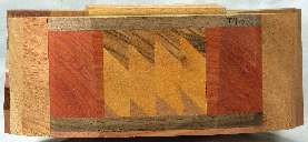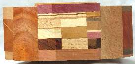 view 3: bocote over aromatic red cedar over cocobolo over osage orange all backed by aromatic red cedar then sided by mahogany(?) and all of that backed by aromatic red cedar.