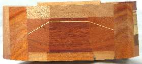view 7: river red gum(?) over a complex lamination over aromatic red cedar and all backed by makore(?).