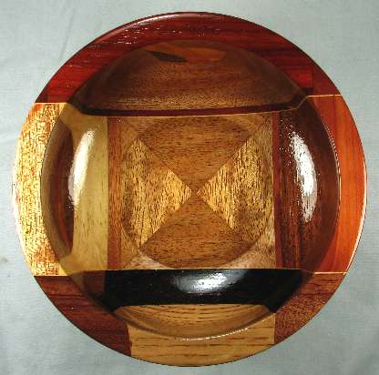 flaws/issues: The left segment of lignum vitae in view 3 has a knot that did not turn out entirely solid, so there is a rough spot. This is wood character, not a flaw --- and that's my story and I'm sticking with it :-)