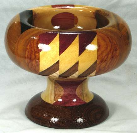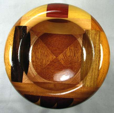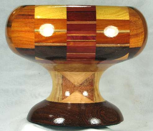 The alternating grain arrangement of the 4 sections of panga panga in the base create a nice effect and the butt end of the macawood at both sides of view 1 has a nice grain effect --- more interesting that the face grain pattern, I think, although it was a bear to turn since macawood butt end tends to crush and tear unless the lathe chisels are razor sharp