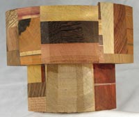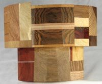 view 1, top to bottom: yellowheart, padauk, walnut, tulip poplar,red oak