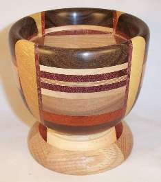 Prices are based on secondary considerations such as how many pieces of wood (and therefore roughtly how much time) went into making a bowl, the size of the bowl (again because of the time factor), and the cost of the specific woods used, but mostly the price is based on the primary consideration of how much I like it. I have long given up trying to divine other people's tastes. I have had what I consider to be one of my ugliest bowls praised as my most beautiful and one that I just loved condemned as gaudy. SO ... I do these for myself and when I think one didn't turn out too great, I price it lower and when I think it turned out well, I price it higher. If your taste runs contrary to mine, you'll love my pricing and if runs parallel to mine you'll like the bowls and dislike the prices.