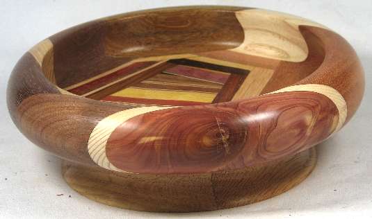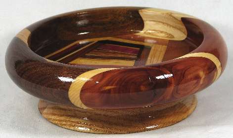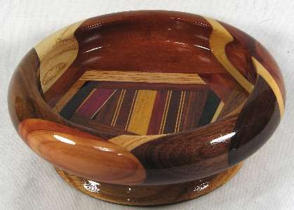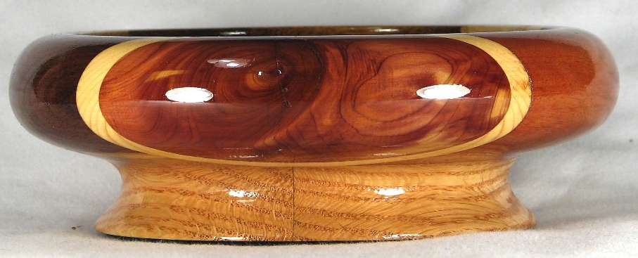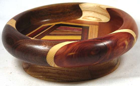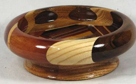 view 7a, first as a bowl blank, then raw, then with natural stain, then final with polyurethane. Note the knot crack
