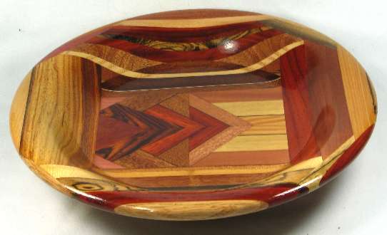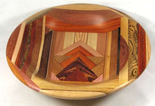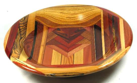 comments: To me, this bowl is simply spectacular! I really liked what I built up as the "BOX" on this one and after that I felt that this one could be among my best, so I took extra care in selecting the other pieces that I added to the blank and I am just delighted with the result. The woods I select for these bowls sometimes look worse that I expect them to (and occasionally better) but on this bowl, everything turned out just GREAT, with the slight exception of the minor flaws in the bocote. The shape is a totally new one for me and I love it (so will certainly do more of them) and that combined with the excellent appearance of the woods selected make this what I feel is the best bowl I've turned up to this point (July '06)