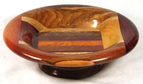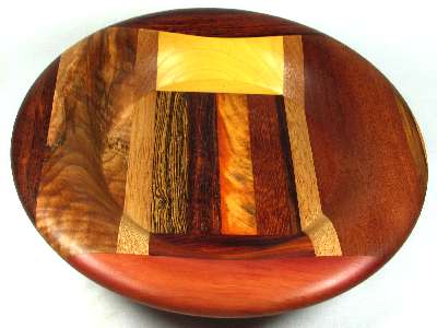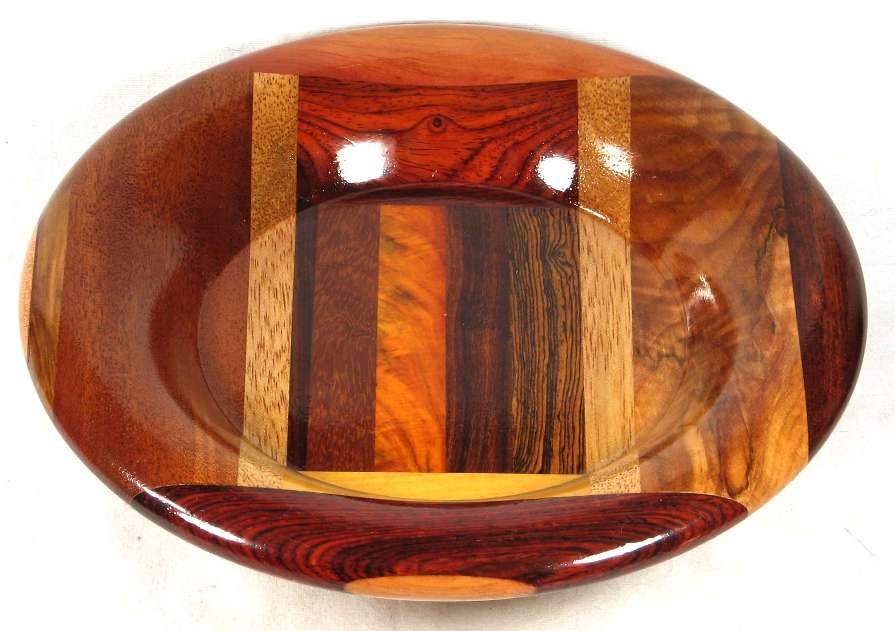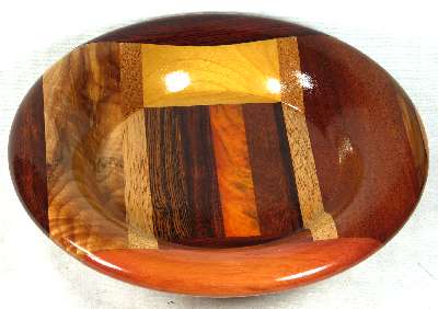 view 1: redheart (pink/purple sapwood merging to red heartwood that only shows on the bottom of the bowl), cocobolo, BOX