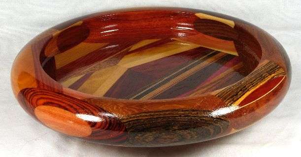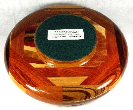 view 5c as the bowl blank, raw (fresh off the lathe), with an application of natural stain, and then as the finished bowl. In the pic of the finished bowl, the yellow color in the paela is much too strong --- the wood is beautiful but it is more orange than yellow, as you can see in the other pics.