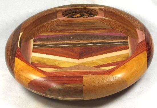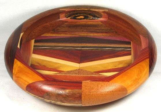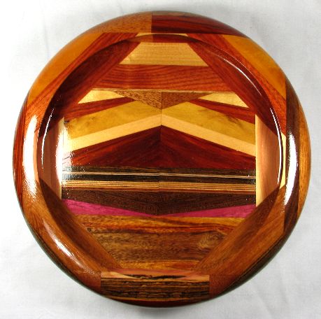 comments: There's a lot of spectacular wood in this one, especially the padauk in the box, the canary in view 1, the very bright purpleheart in the box, the cocobolo in view 7, and the paela in views 4 and 6. The canary base doesn't rise to the level of "spectacualar" but it is very nice.
