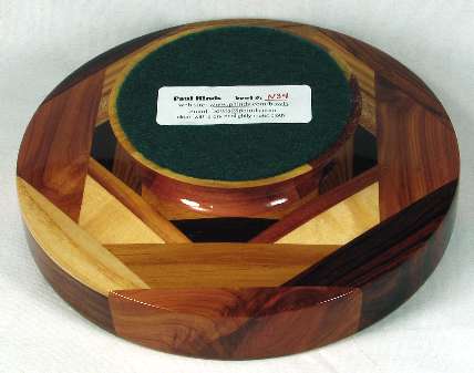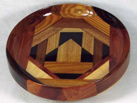 comments: excellent wood throughout this one, especially the morado and larger cocobolo pieces. The knot in the red aromatic cedar in view 1 came out very nice and the sharp contrast in the box worked very well, I think. The African mahogany slants above the box are highly chatoyant.