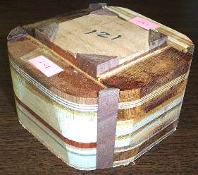 view 7: mahogany, laminate, doug fir, pine, padauk, other w/ maple on bottom, all backed by a mahogany thin