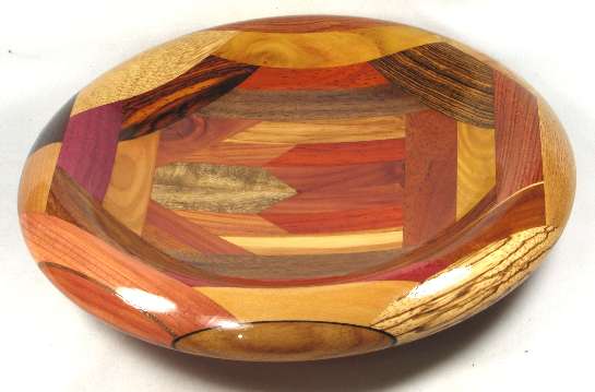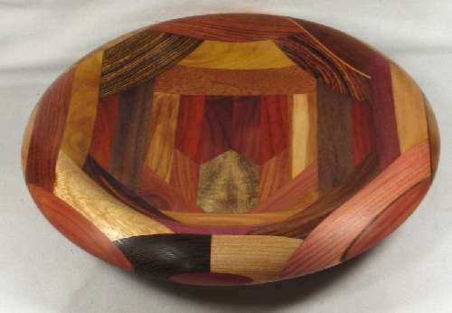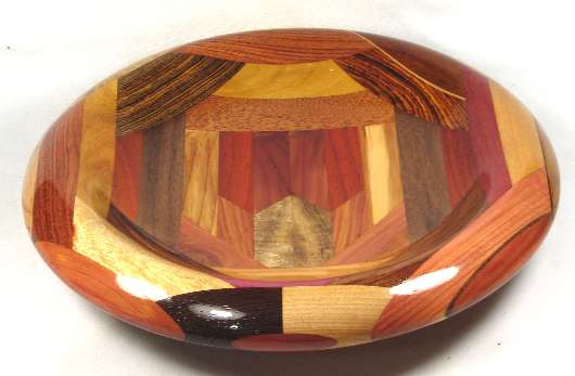 view 3: ? (probably narra, possibly elm), ebony veneer, yellowheart, purpleheart, padauk, walnut, BOX