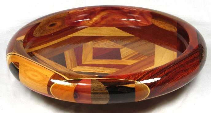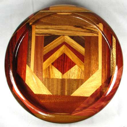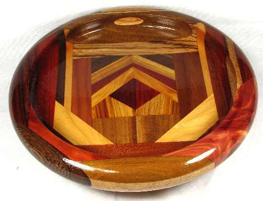 BOX: in the middle is padak over canary and above that is osage orange, redheart, canary, and then in the upper corners, wedges of Peruvian walnut