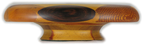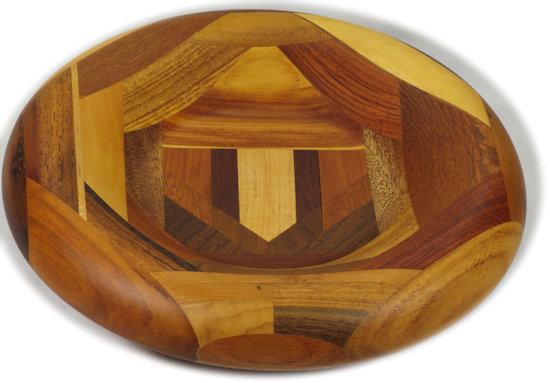 COMMENTS: really attractive curves both in the overall bowl shape and in the individual woods themselves. Heavily undercut rim combined with a relatively small inner flat surface makes for a wide, gentle, slope over the rim thus creating a very nice feel.