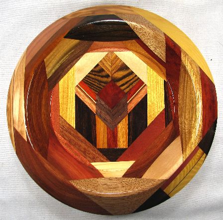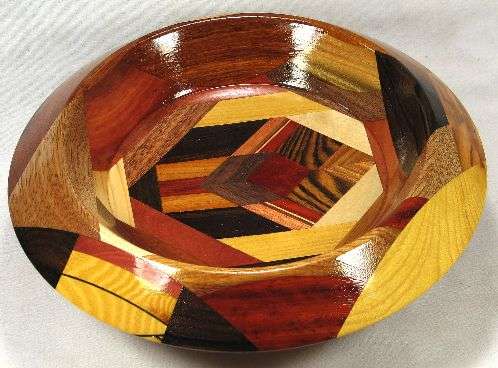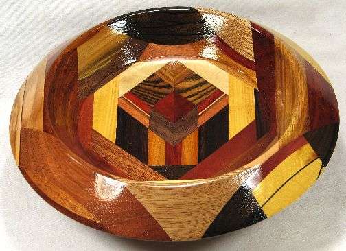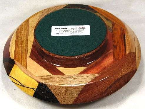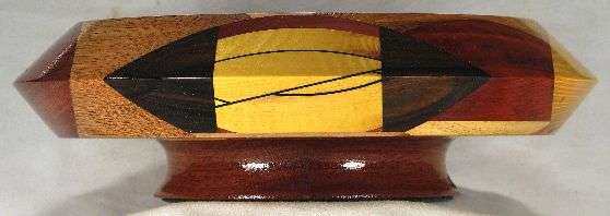 view 3: redheart, canary, padauk (on the bottom of the bowl this is prima vera), dark cocobolo, BOX