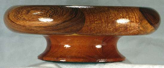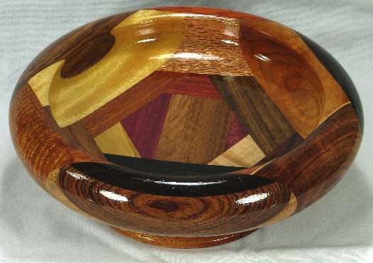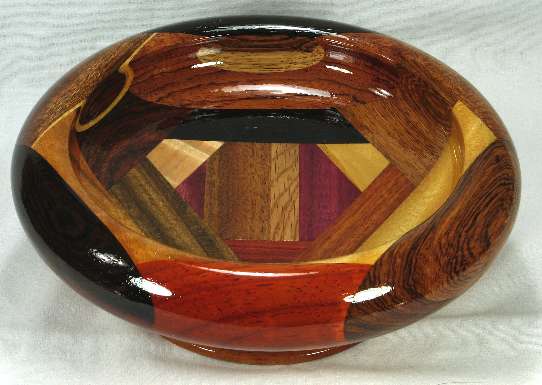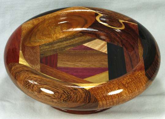 comments: some really nice omega curves inside the rim on this one. The curly mahogany in view 8 is very nice. The shedua in view 4 is nicely chatoyant as is the yellowheart in view 5.