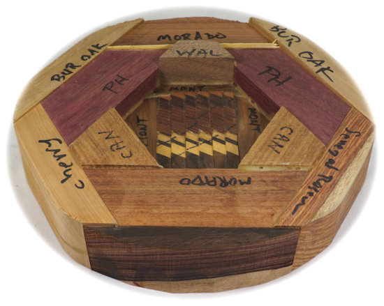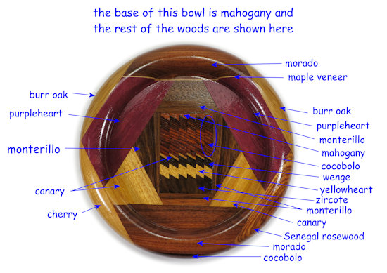 COMMENTS: ALL of the woods around the rim are chatoyant, the canary pieces are all beautiful and the purpleheart pieces are ... well ... PURPLE :-)